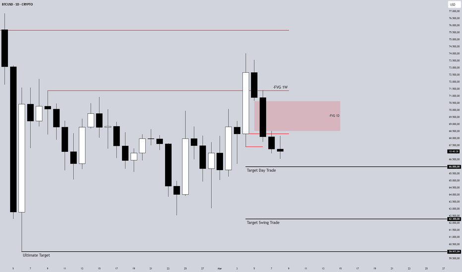 Dalam jangka pendek, harga masih berpotensi turun lebih dulu menuju area demand sekitar 64K untuk mengambil liquidity di bawah.