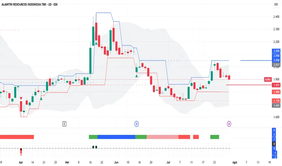 ADRO saat ini mengalami koreksi setelah kenaikannya tertahan area swing high 2050. Namun jika Anda cermati lebih detail, terdapat area swing low yang cukup kuat di area 1855. Selama mampu bertahan di atas area ini, ADRO masih ada potensi technical rebound kembali ke swing high 2050.