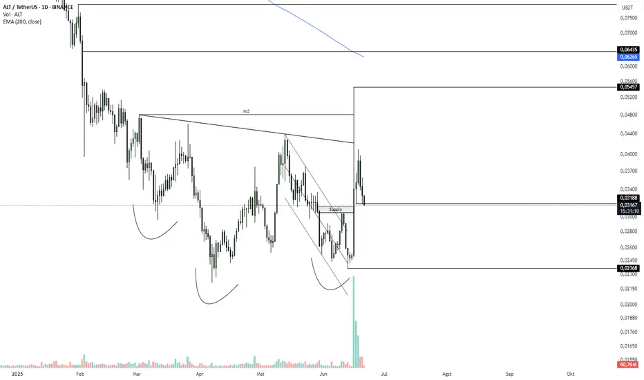Setelah berhasil membreak supply zone pada jangka waktu weekly dengan momentum yang cukup kuat serta membentuk pola Inverted Head and Shoulders (IHNS), AltLayer saat ini sedang mengalami koreksi.
