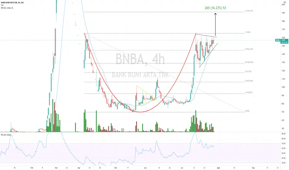 Chart pattern BNBA, terindikasi membentuk pola Cup n handle.