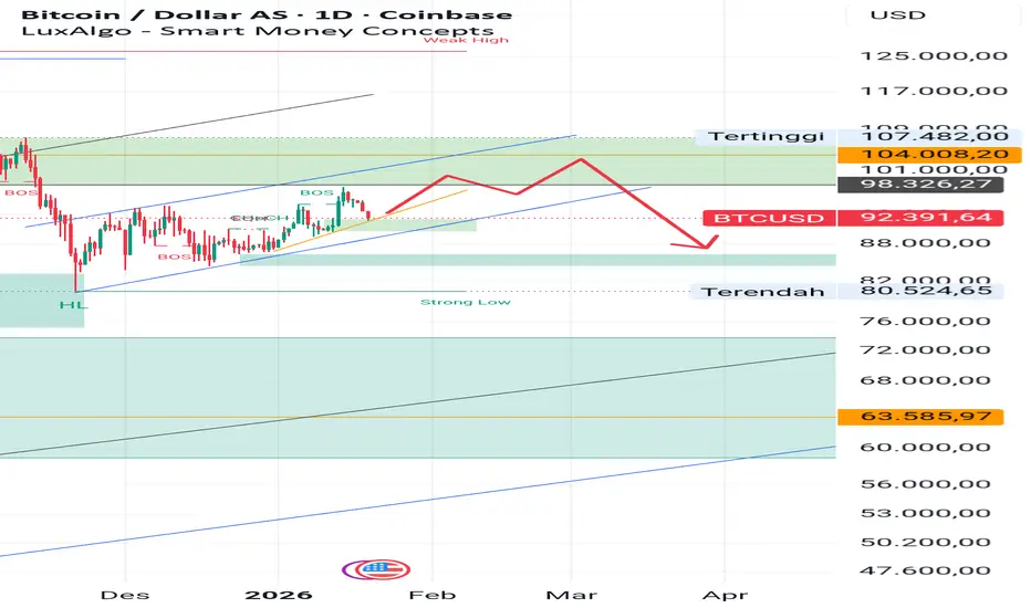 Resistance kuat saat ini berada pada area 98200 - 104000, area ini merupakan zona likuiditas dan suply intraday,