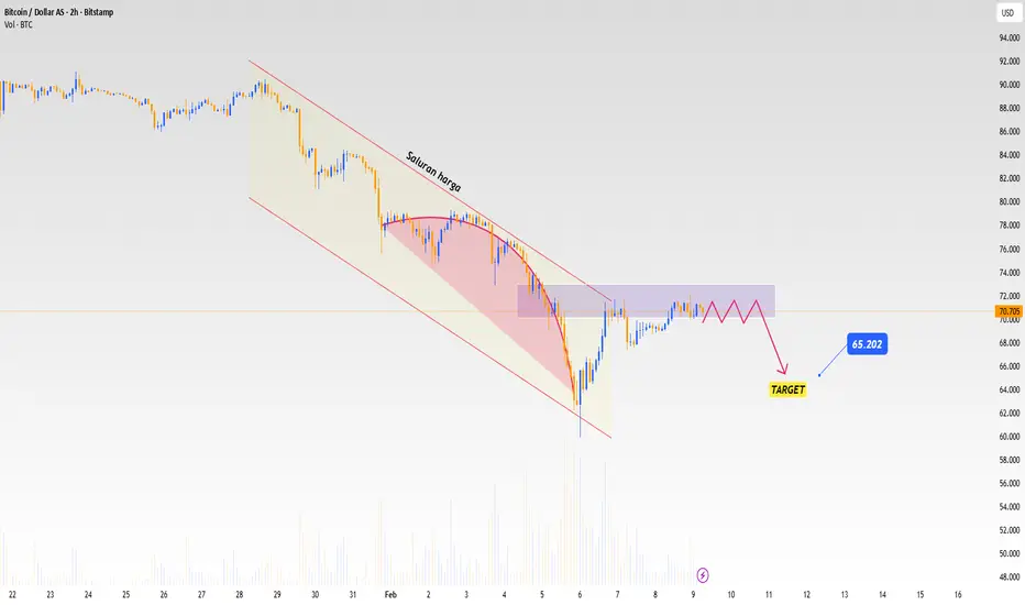Jika harga terus ditolak di area resistance saat ini dan struktur lower high dipertahankan, BTC kemungkinan akan kembali menguji zona likuiditas yang lebih rendah sesuai dengan skenario bearish yang ditandai pada grafik sebelum menentukan tren selanjutnya.