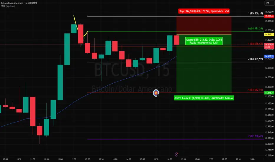 No gráfico de 5 minutos do BTCUSD, BTC1! também, rompeu a linha branca -2 da projeção da sequência de Fibonacci da última perna de alta (neste caso uma onda 2), retraiu para um 3/1 e poderá cair até seu alvo na linha vermelha -4. Estopa se romper a linha branca 1.