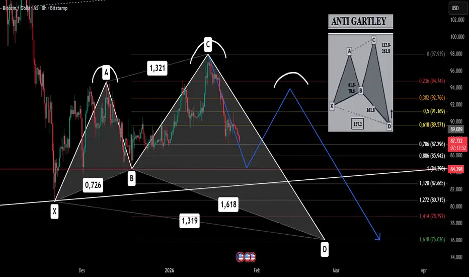 Ada banyak hal yang terjadi di grafik, untuk saat ini ini adalah teori saya. Saat ini saya melihat pola anti-Gartley pada grafik, kita akan turun ke area B dan kemudian memantul, pantulan tersebut dapat membawa kita naik ke pertengahan $90.000 yang kemudian akan menutup celah kecil CME antara $92.940 dan $93.045 yang kemudian membentuk pola Head and Shoulders dengan B sebagai garis lehernya.