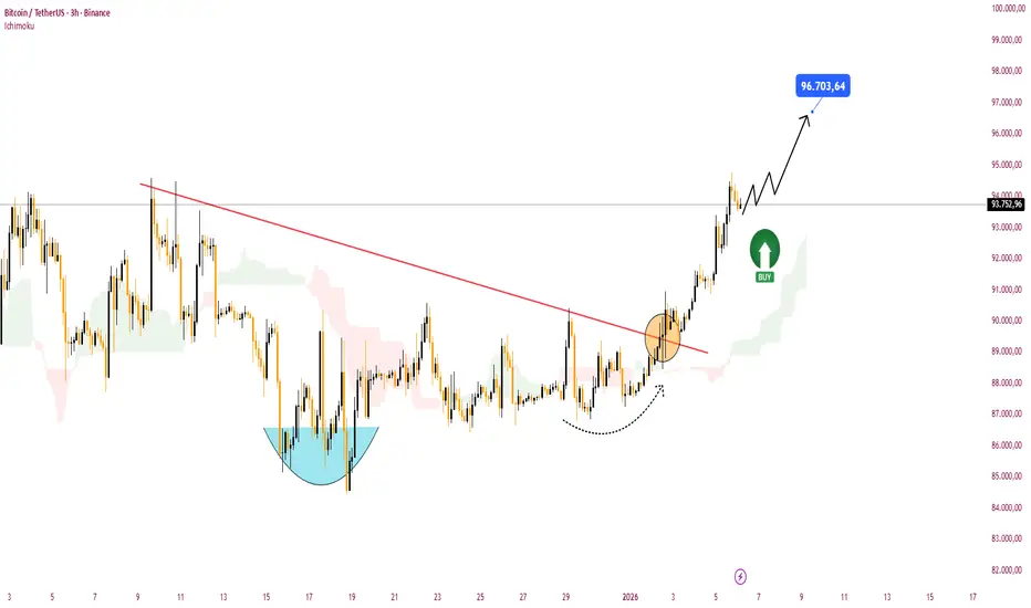 Kemudian kelanjutan tren naik, menuju zona target atas sekitar 96.703