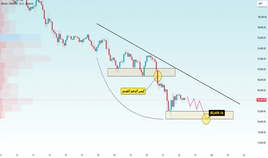 84 ألفًا، لكن لا يمكن الصمود للساعات القليلة القادمة → الليلة، سنشهد 82 ألفًا، وصباح الأحد، 80.6 ألفًا، وبداية الاثنين، قد نشهد 78 ألفًا.