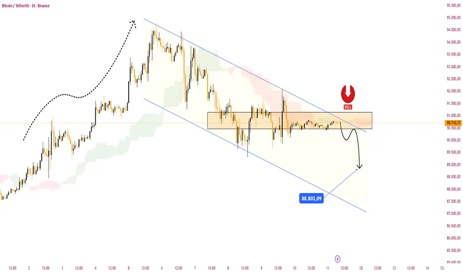 Ketika harga bertahan di bawah area resistensi saat ini, BTC kemungkinan akan menembus kisaran akumulasi dan melanjutkan tren turun, menargetkan 88.8k - bagian bawah saluran. Skenario bullish hanya dipertimbangkan jika harga jelas-jelas keluar dari channel.
