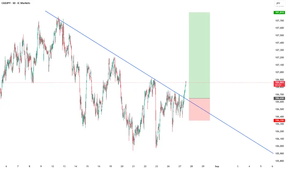Terkonfirmasi CADJPY menunjukkan penguatan yang signifikan, jika entry saat ini tentu rasio RR yang didapatkan tidak akan begitu signifikan, maka dari itu ada baiknya menunggu harga kembali ke level penembusan trendline agar mendapatkan RR yang maksimal.
