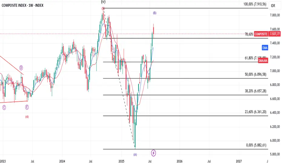 Melihat weekly chart IHSG, memang sedang ada penguatan, namun perlu diperhatikan karena posisinya masih di wave b, apakah sudah waktunya koreksi ke wave c? kita tunggu saja perkembangannya.