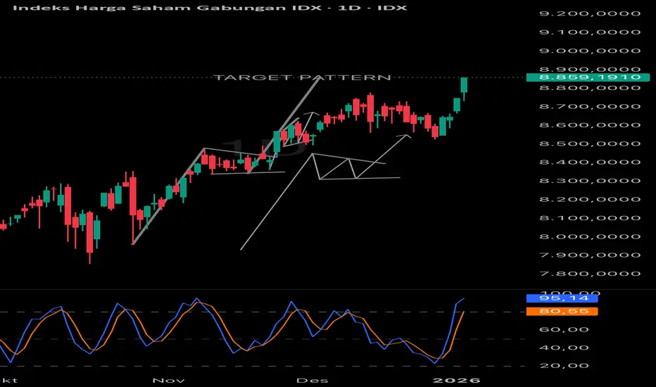 IHSG sudah sampai di target pattern nya. Masih ada potensi penguatan, tapi mungkin terbatas.