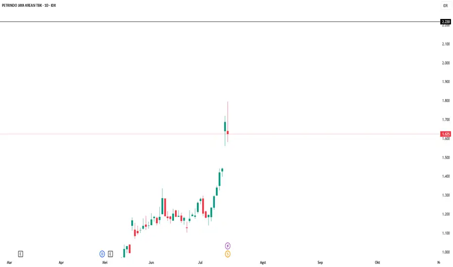 15 Juli 2025 harga dibuka di 1.685 sempat naik menuju 1.800 namun akhirnya turun hingga 1.575. ini membuat pelaku pasar bertanya tanya apakah CUAN akan melanjutkan fase uptrendnya atau tidak