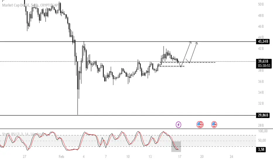 DOGE menunjukkan pola segitiga naik. RSI Stoch menunjukkan oversold, potensi rebound. Resistance di 42B-43.24B, support di 39.57B. Perhatikan event pasar AS untuk volatilitas. #DOGE #Crypto