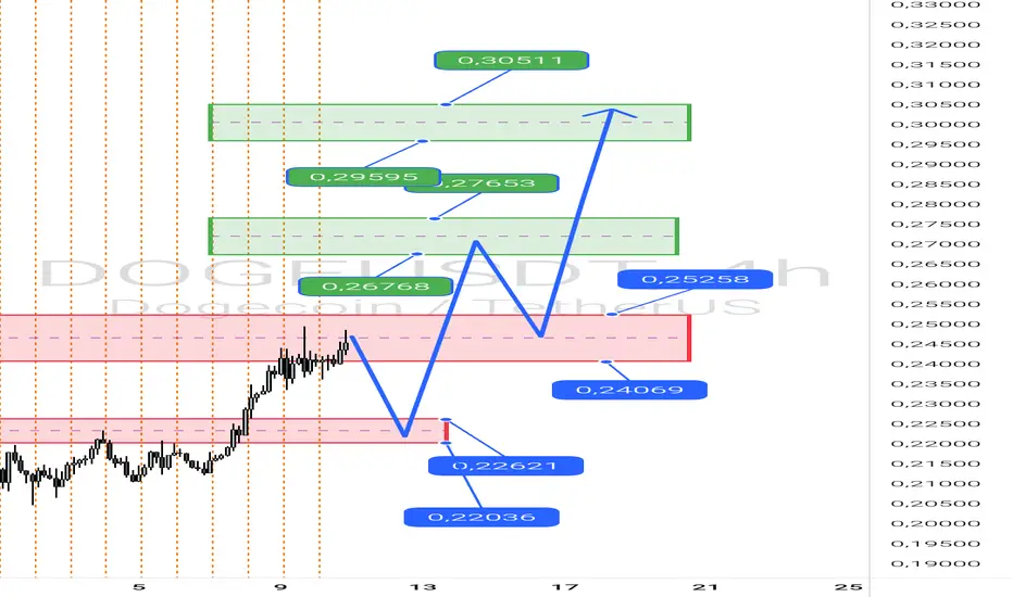 DOGE sekarang berada di resistennya, apabila dia reject dari resisten nya sekarang maka kita bakal bisa lihat doge akan kembali retest ke area zona RBS (Resistence Become Support) di area price 0.22621 - 0.22036 kesimpulannya untuk sekarang wait and see dulu untuk DOGE dan sangat menarik