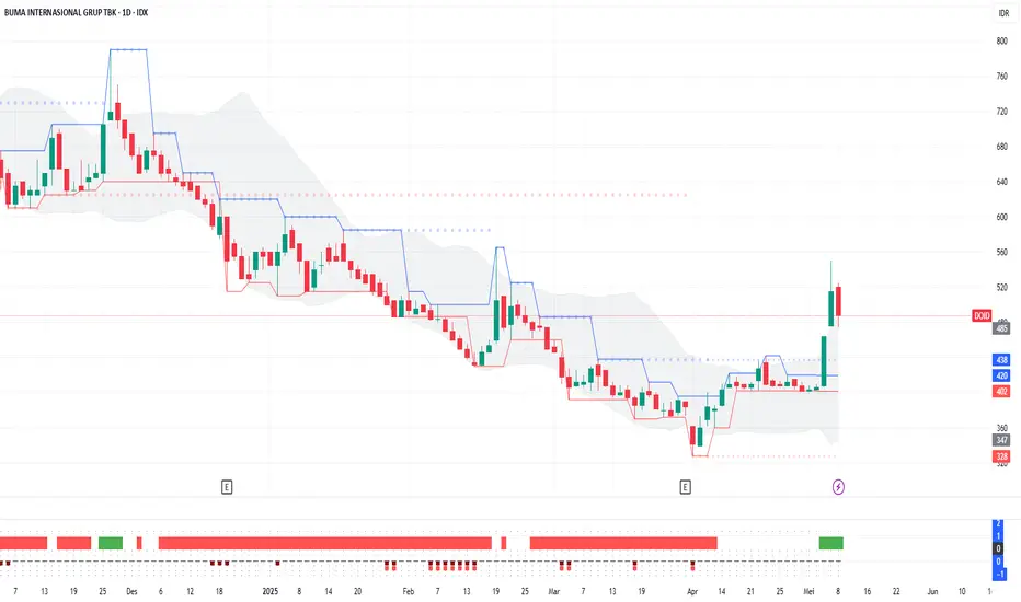 DOID saat ini mengalami technical correction setelah mengalami kenaikan tajam dalam 2 hari terakhir. koreksi ini wajar karena kenaikan DOID sudah keluar dari grey area-nya. Target penurunan DOID berada di area swing low 438. Selama DOID mampu bertahan di atas area swing low-nya, saham ini masih berpeluang technical rebound dengan target di swing high 585.
