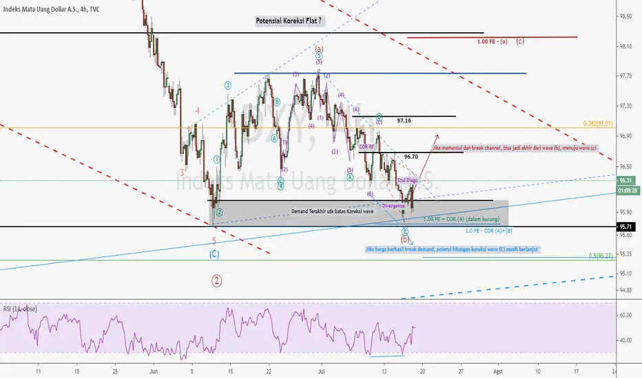 Penutupan candle daily kemarin 16 Juli 2020 tampak bullish engulfing candle dan di chart 1 jam tampak telah membuat ending diagonal,