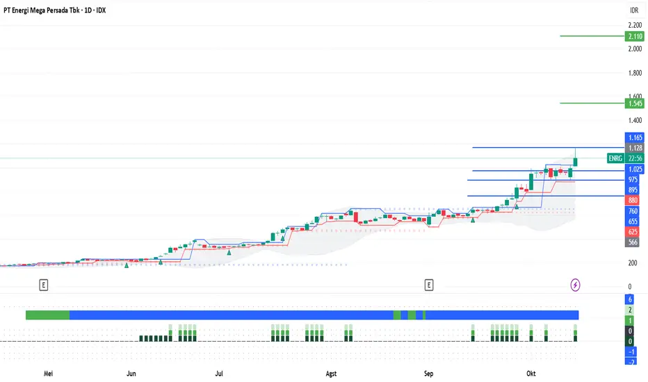 Sesuai dengan ulasan ENRG sebelumnya: 'ENRG Hampir Mencapai Target Major, Masih Lanjut Rally?' saham ini berhasil mencapai target major kami di 1165. Bagaimana peluang saham ini selanjutnya?