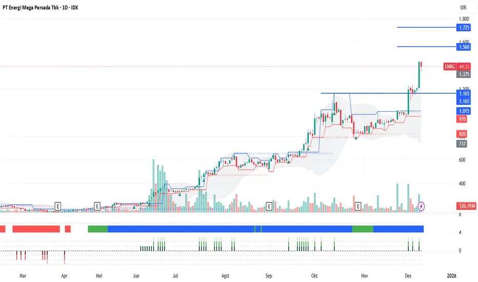 Sesuai dengan ulasan ENRG sebelumnya: 'ENRG Hampir Mencapai Target Major, Masih Lanjut Rally?' saham ini berhasil mencapai target 1165 dan saat ini terus bergerak naik dalam fase strong uptrend.