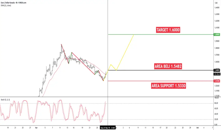 AREA BELI: Disarankan untuk melakukan pembelian, saat harga menembus area 1.5482. Ini merupakan area kunci di mana potensi kenaikan dapat terjadi.