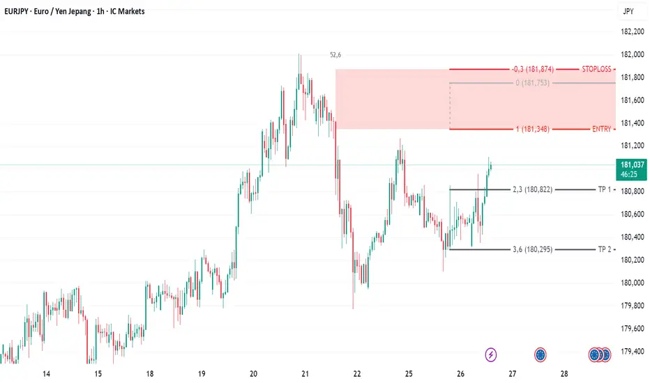 Silahkan lakukan pending order SELL LIMIT, SL, TP1, TP2 di area yang telah di marking dilayar