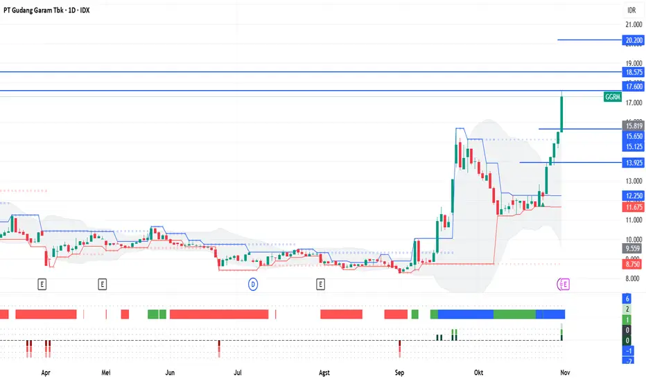 Sesuai dengan ulasan GGRM sebelumnya: "GGRM di Fase Continuation, Ada Peluang ke 15650?" saham ini berhasil melampaui 15950 dan terus bergerak naik dalam fase strong uptrend.