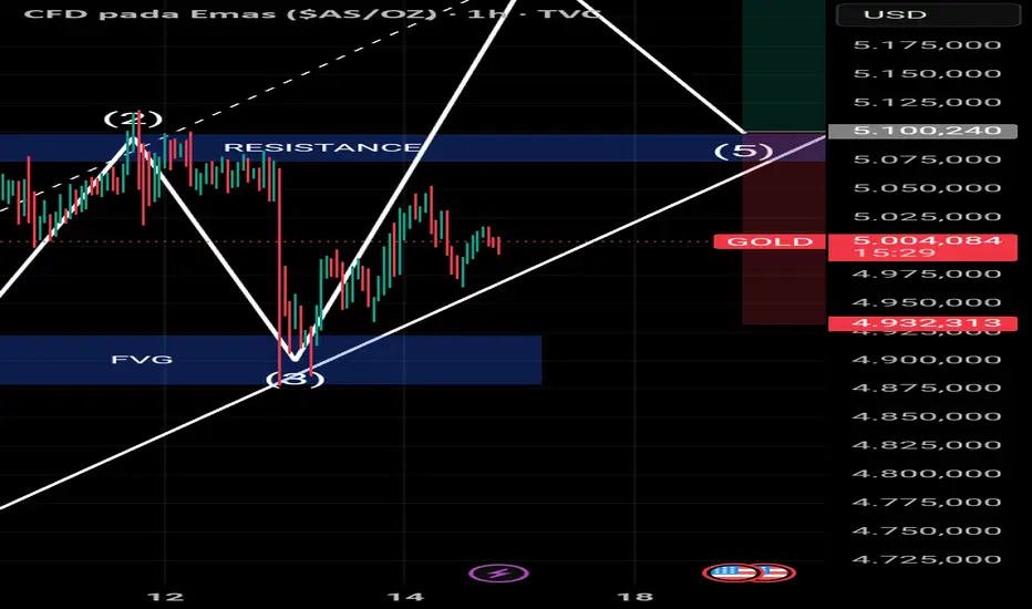 Kesatu Candel masih di dalam trenline H4 dan resistance di area 5.040