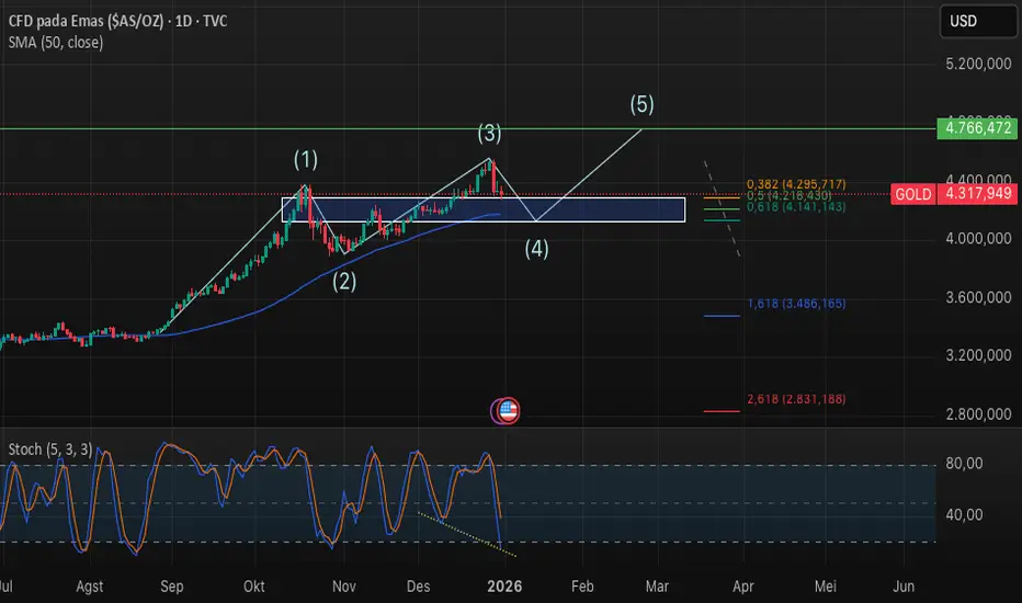 Pada Insight yang saya berikan dengan Elliot Wave, XAU/USD saat ini diprediksi sedang dalam wave ke-5 dengan zona support di 4295-4141 bahkan bisa sampai 4123. Jika tembus 4120 maka diprediksi akan mengalami bearish. Namun apabila XAU/USD memantul dari level supportnya, maka diprediksi akan naik hingga 4766.