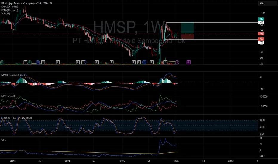 Beranjak dari downtrend, membuat HL, HH, tanda uptrend solid secara weekly, harga masuk value zone secara weekly. MACD-H upsloping. beranjak dari oversold.