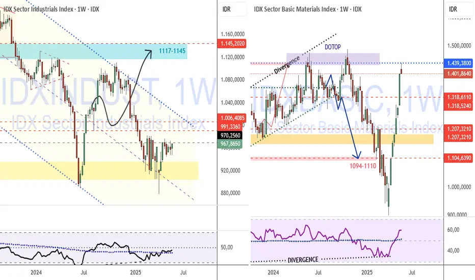 IDXINDUST terlihat masih berjalan secara perlahan menguat, masih berpotensi dobot dengan kecenderungan sementara membentuk SW dahulu (mencari tenaga)