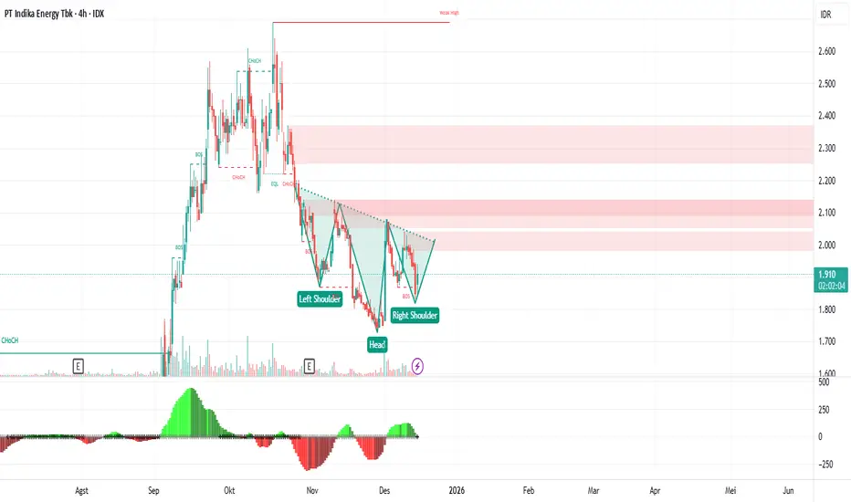 INDY sedang ingin membentuk pola inverse Head and Shoulder, jika belum punya posisi bisa di perhatikan area entry saat ini atau area breakout atau pullback, sesuaikan dengan strategi investasi masing masing-masing.