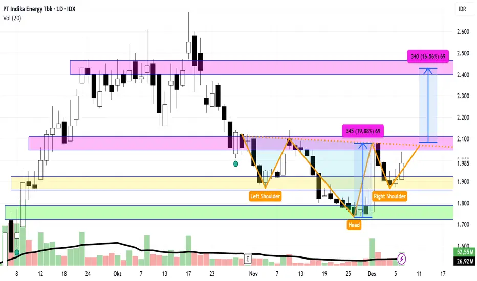 Saham INDY terlihat ada potensi pembentukan pola inverted head & shoulders jika bisa breakout right shoulders di 2080. Saat ini sedang membuat right shoulders-nya.