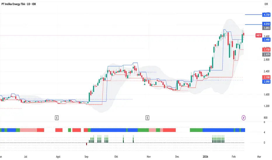 3. Selama INDY mampu terus bergerak di atas support fraktalnya, INDY berpeluang melanjutkan tren bullish dengan potensi kenaikan hingga 4010 dan 4350