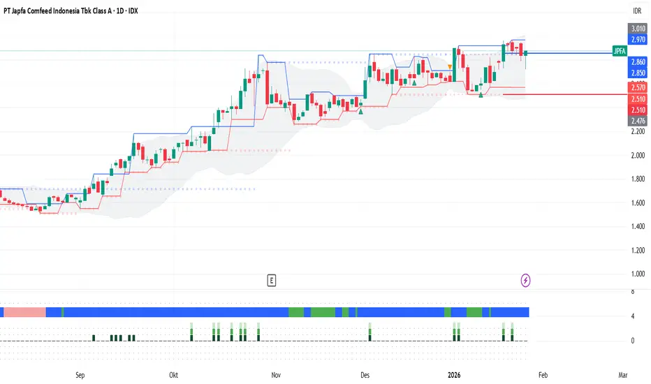 Harga yang mencapai swing high biasanya ada potensi technical correction terlebih dahulu. Namun, jika ternyata JPFA mampu bertahan di atas area swing high, ada potensi untuk bergerak naik lebih tinggi lagi.