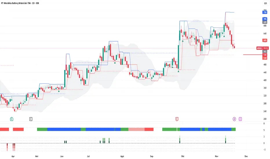 3. Jika MBMA mampu bertahan di atas area tersebut, ada potensi technical rebound pada saham ini dengan target kenaikan hingga ke support fraktal 605.