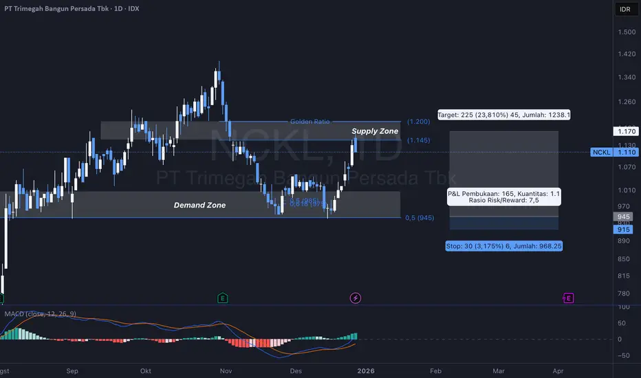 Secara teknikal, NCKL sedang dalam fase pembalikan tren (reversal) jangka pendek.