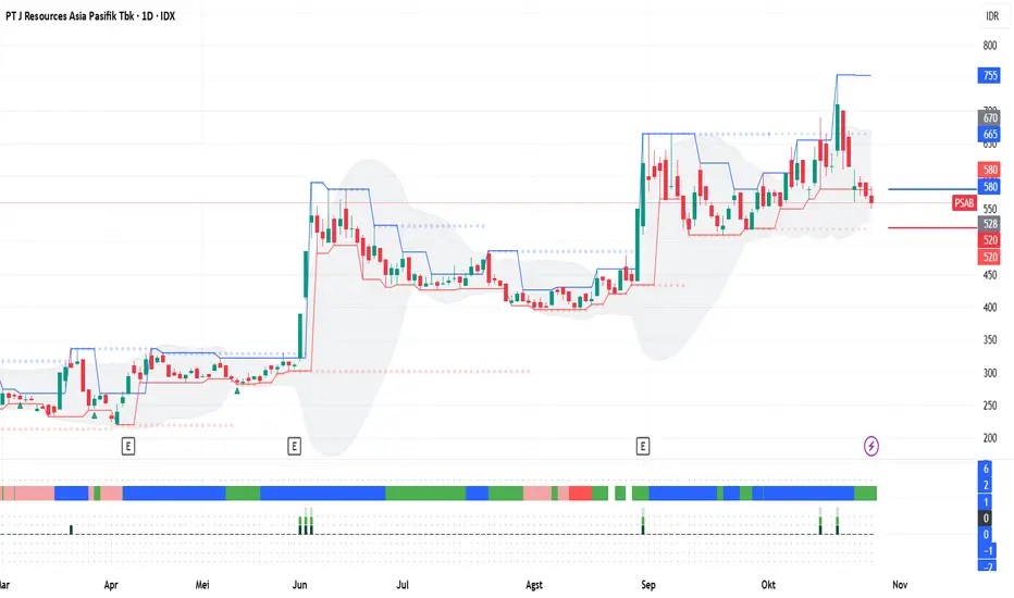 4. Jika PSAB mampu bertahan di atas area tersebut, ada potensi technical rebound pada saham ini dengan target kenaikan hingga ke level 580.