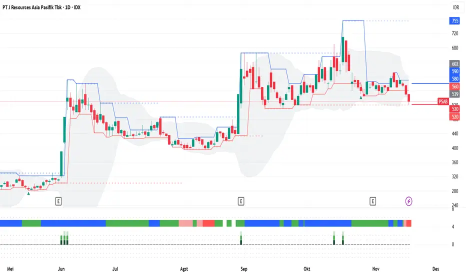 3. Jika PSAB mampu bertahan di atas area tersebut, ada potensi technical rebound pada saham ini dengan target kenaikan hingga ke level 580.