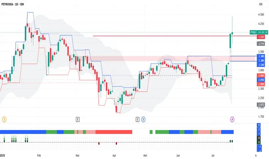 - Buy on weakness jika PTRO koreksi ke area swing low 3240 - 3380.