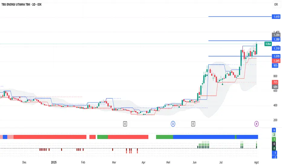 Sesuai dengan ulasan TOBA sebelumnya: 'TOBA Tertahan Neckline Bullish Pattern, Masih Ada Peluang?' saham ini hampir mencapai target major kami di 1280.