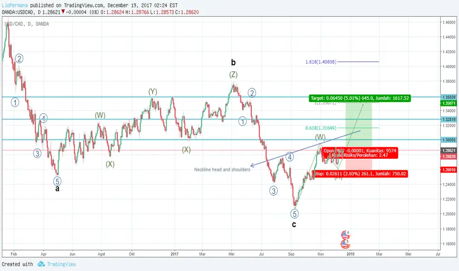 USDCAD terlihat telah menyelesaihan gelombang zigzag pada TF Weekly. kemungkinan akan melanjutkan kenaikannya setelah menyelesaikan gelombang tersebut. Pada degree premierly/ TF daily terlihat membentuk double three WXY dan pola head and shoulders. titik entry bisa dimulai dari sekarang atau menunggu breakout resistant @1.2909 dengan SL @1.2625. TP atau trailling stop ditergetkan maksimal @ 1.353 atau resistant dibawahnya.