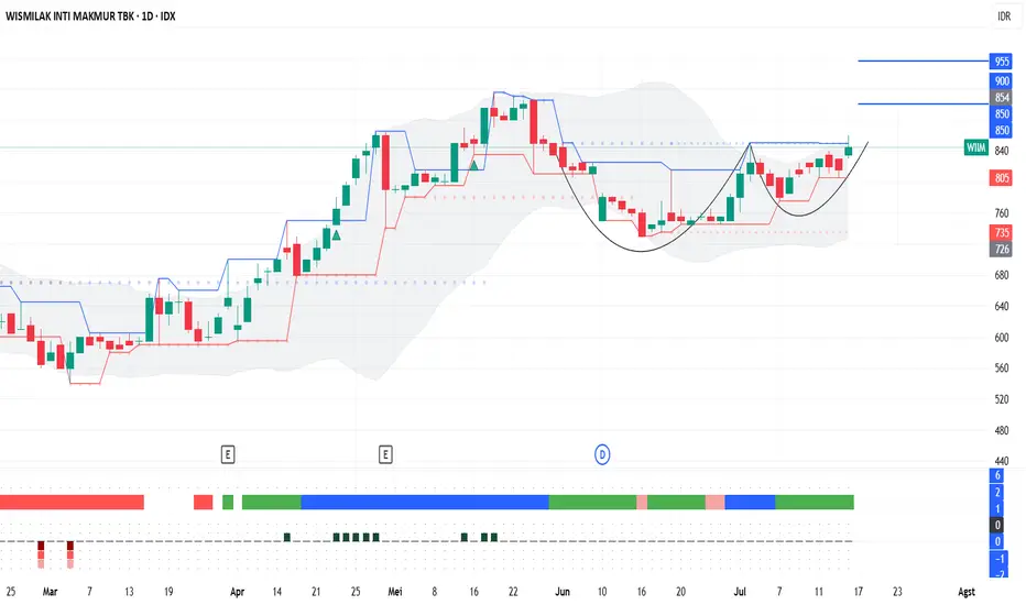 Jika pola tersebut berhasil dikonfirmasi dengan WIIM berkonsolidasi sehat di atas neckline 850, terbuka ruang kenaikan yang lebih tinggi menuju 955 dengan target minor di level 900.