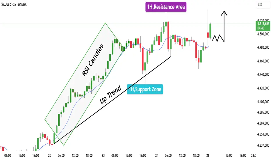 XAUUSD tetap berada dalam struktur bullish yang kuat pada timeframe 1 jam. Harga terus menghormati garis tren naik dan bertahan kuat di atas area permintaan utama. Penurunan harga baru-baru ini menunjukkan karakteristik korektif daripada pembalikan tren, karena tekanan jual gagal menembus support struktural di sekitar 4450, sehingga pembeli tetap memegang kendali.