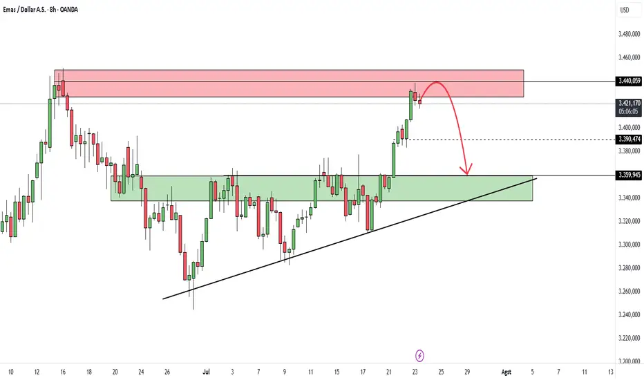 Saat ini, emas diperdagangkan di sekitar $3.420. Meskipun ada kemungkinan koreksi kecil untuk konsolidasi, tren naik tampaknya masih akan terus berlanjut.