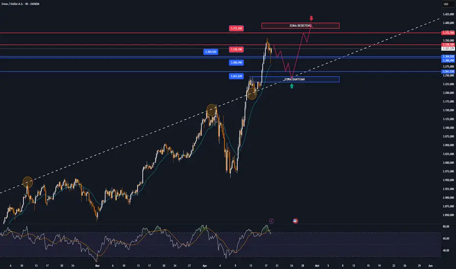 Dukungan: 3.304 – 3.300 – 3.261 USD