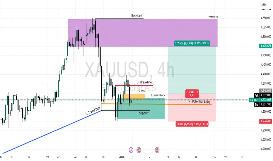 Area support saat ini menjadi fondasi reversal menuju resistance atas.