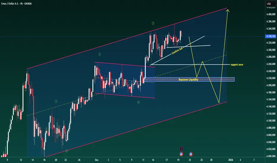 Jika harga gagal bertahan di bawah 4317 dan mendapatkan struktur bullish kembali, risiko harus dikurangi dan posisi pendek dihindari.