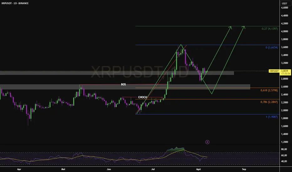 Selama support 2.5–2.8 bertahan, XRP berpeluang menuju $4.13. Buy on dip di zona support bisa jadi strategi terbaik.
