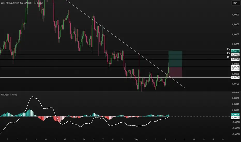 Entry sekitar 0.0057 dengan SL di bawah support (0.0055).
