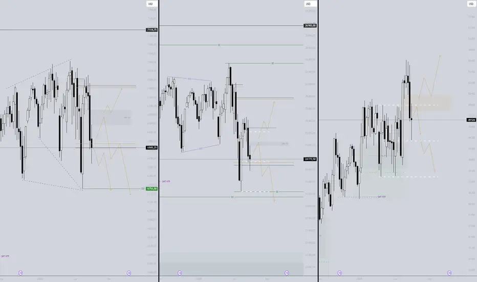 ES - książkowy brak jakości, nadal kwitniemy i czekamy. Knot 1W + IMB 1D mogą lokalnie stworzyć małą ścieżkę na to, co w najbliższych dniach. Nie będę robić miliona kresek, mamy plan na 1W a tu tylko krótki wniosek. Zamknięcie pod 50% knota i utworzenie spadkowego POI, oczekuję wtedy LL. Jeśli jednak obronią ten knot i utworzą wzrostowe POI, np. inwersję, wtedy oczekuję jeszcze raz wyjścia wyżej do górnego knota 1W. Mam POI HTF, czekam aż cena do nich przyjdzie, następnie w tym POI śledzę nowe triggery na niższych TF.