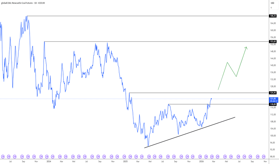 Coal Newcastle ( ICEEUR:NCF1! ) telah Breakout Resistance di USD118 yang merupakan Previous High sehingga sudah ada indikasi Higher High.
