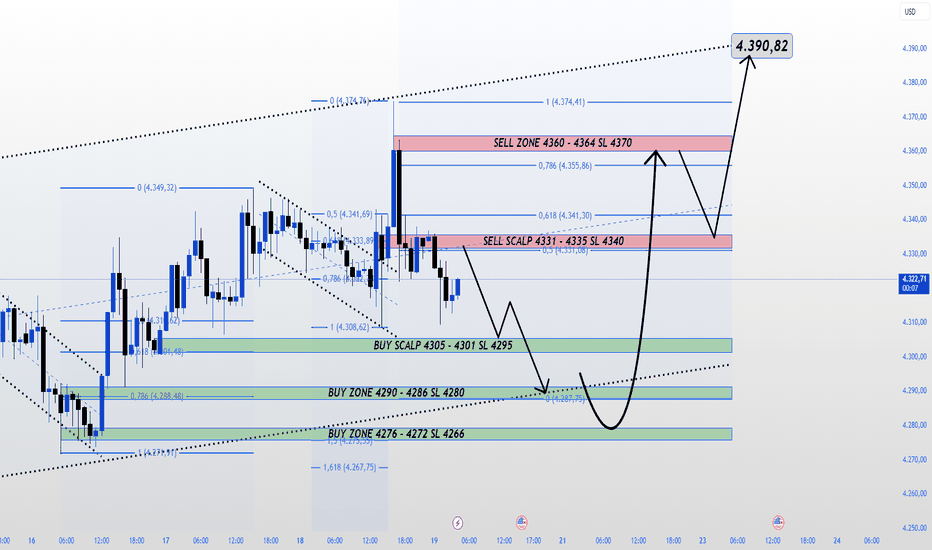 Ide: Ini adalah area buy yang bagus dalam struktur akumulasi. Jika harga turun ke 4323–4325 lalu memantul kuat, saya memprioritaskan buy untuk mendapatkan dorongan ke level resistance terdekat.
